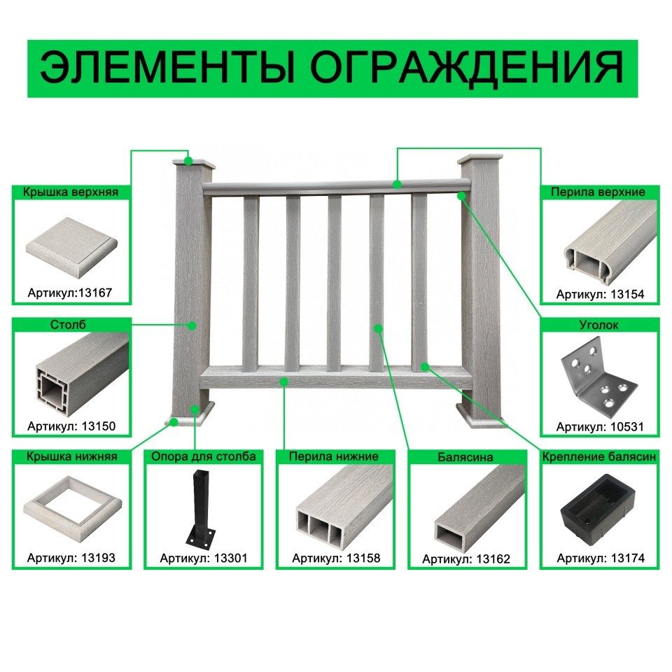 Будьте первым, кто оставил отзыв на “Балясина из ДПК Faynag Wood Серебро 750х54х36 мм”