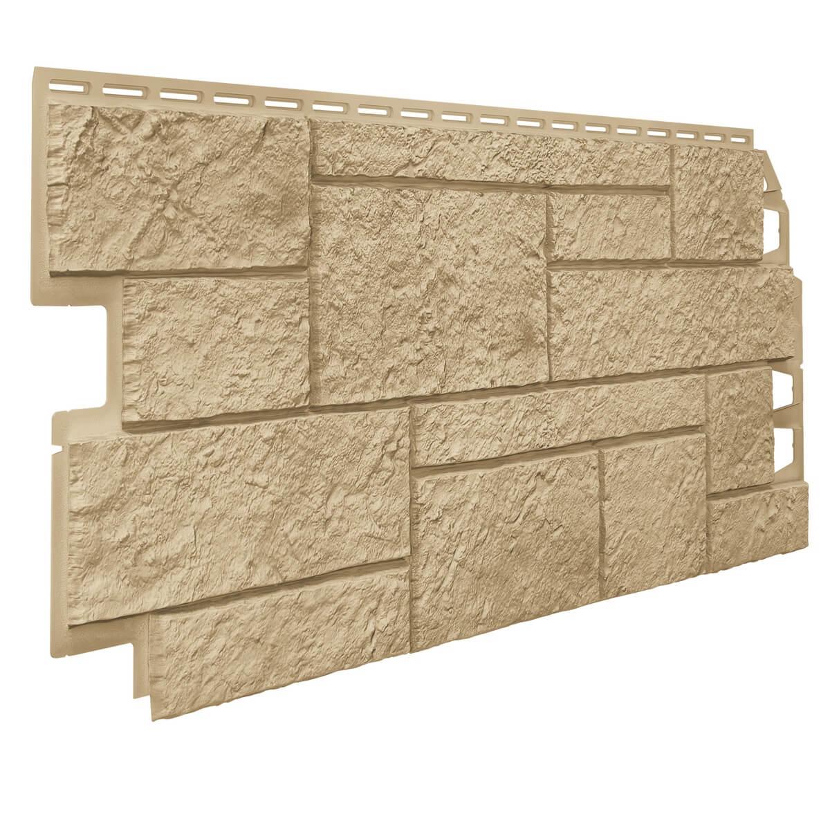 Эта фасадная панель изготовлена из полипропилена с поверхностью, имитирующей текстуру натурального песчаника. Прекрасное решение для отделки фасадов и цоколей зданий различных типов.