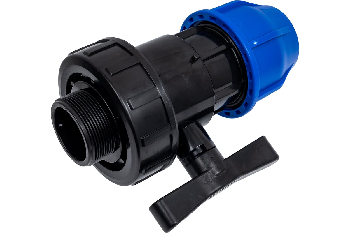 Компрессионный шаровой кран Millennium ПНД 63-2 с наружной резьбой, PN10 PEKM6350