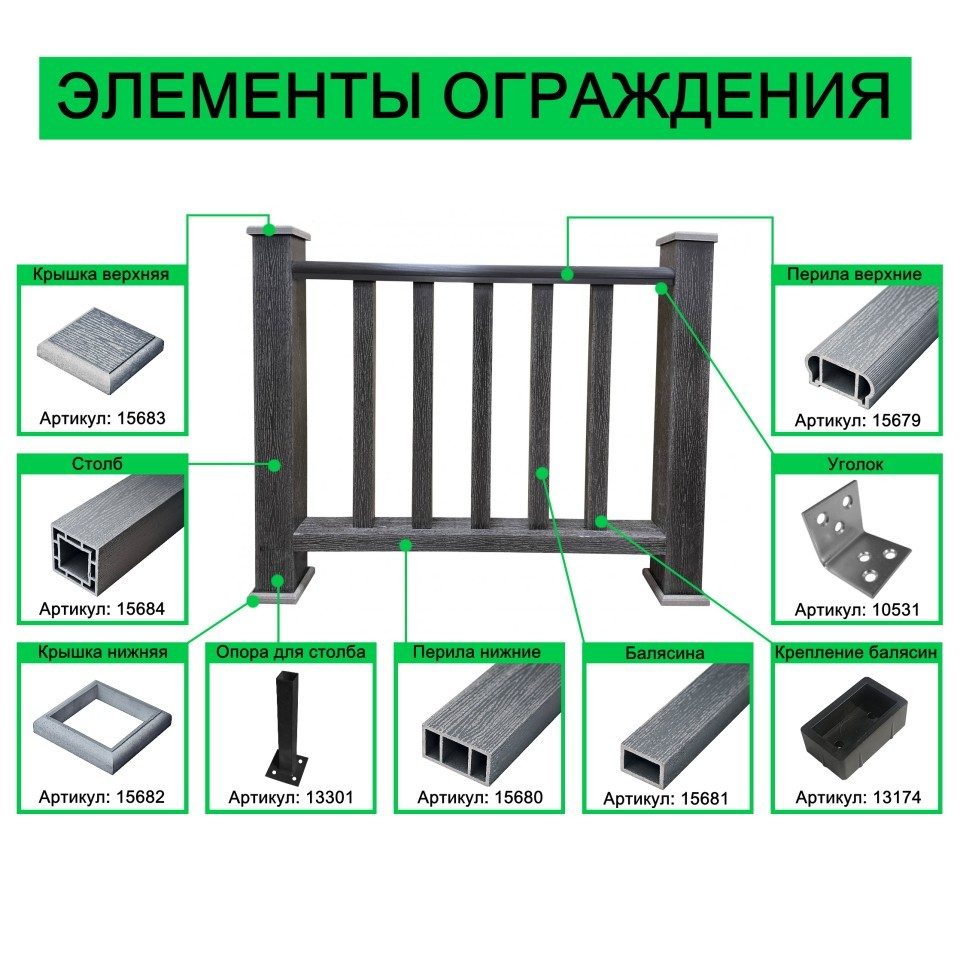 Приобретая крышку верхнюю из ДПК Faynag Wood Графит 120х120 мм, вы инвестируете в качество и долговечность вашего ограждения. У нас вы можете найти широкий ассортимент комплектующих для ограждений из ДПК по доступным ценам.