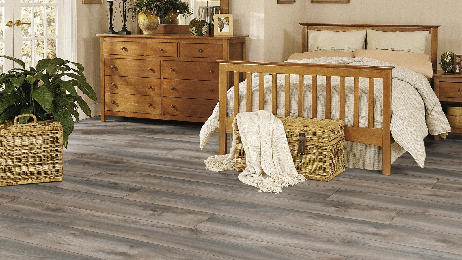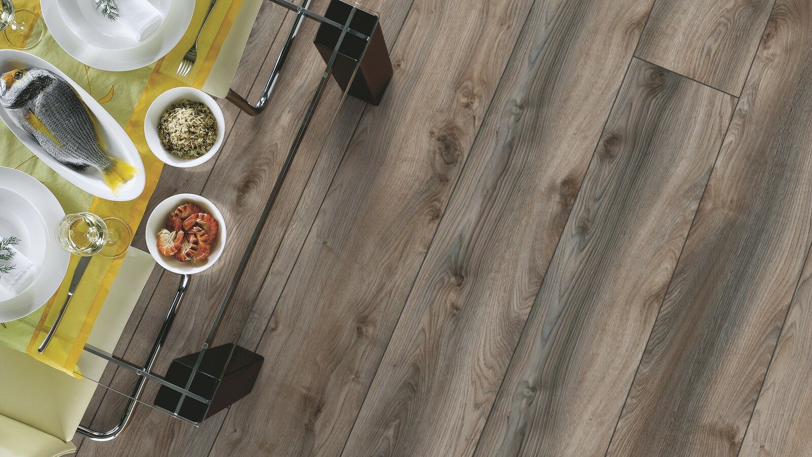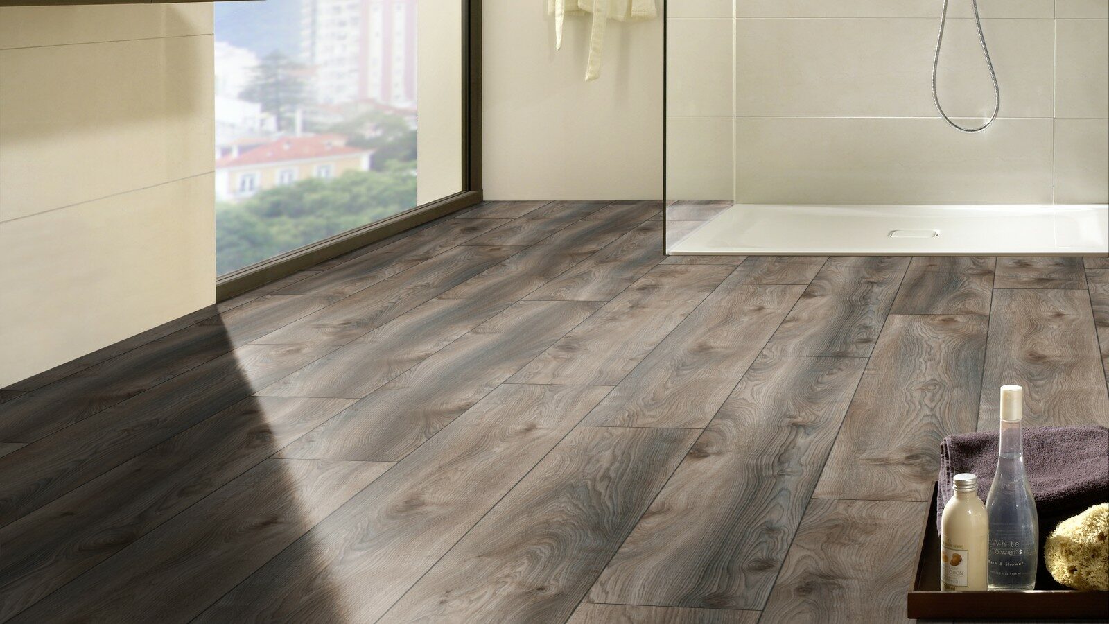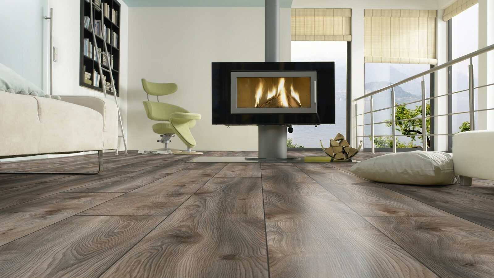 Специальный состав ламината не поддерживает горение и не выделяет токсичных веществ в атмосферу. Также он совместим с системой теплый пол и не выгорает на солнце.