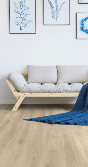 Ламинат изготовлен на прочной HDF-плите плотностью 880 кг/м³ и оснащён бесклеевым замковым соединением, обработанным горячим воском для дополнительной влагозащиты. V-образная фаска придаёт каждой доске выразительность и создаёт эффект натурального деревянного пола. Укладка ламината проста и быстра, а уход не требует усилий.