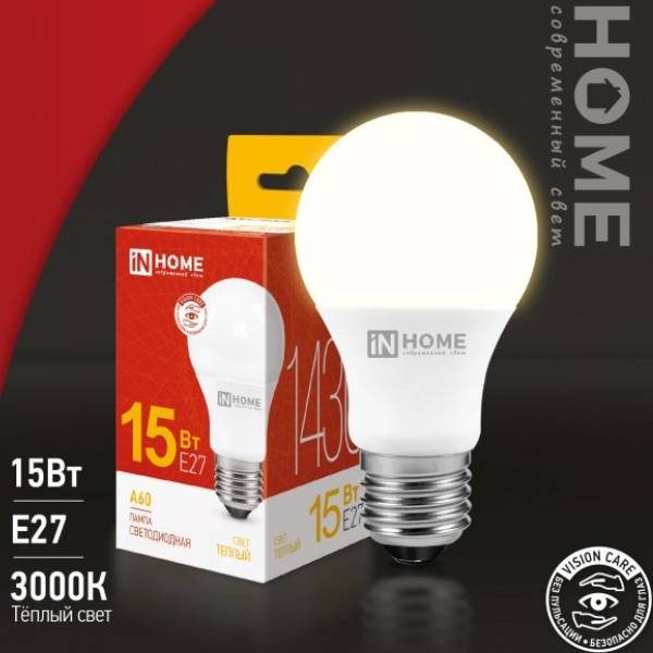 Выбирая лампу светодиодную LED-A60-VC 15Вт 230В Е27 3000К 1430Лм IN HOME, вы инвестируете в качество и комфорт вашего освещения.