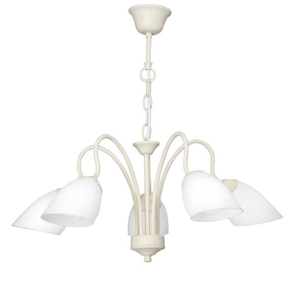 Цветовое решение в бежевом и белом оттенках делает эту люстру универсальной и легко сочетаемой с другими элементами декора. Подходит для установки на натяжной потолок.