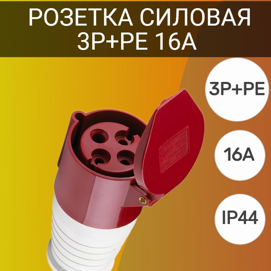 Переносная силовая розетка предназначена для подключения к электросети с напряжением 380 В и током до 16 А. Защита от пыли и влаги по стандарту IP44 обеспечивает безопасность использования на открытом воздухе или в условиях повышенной влажности.