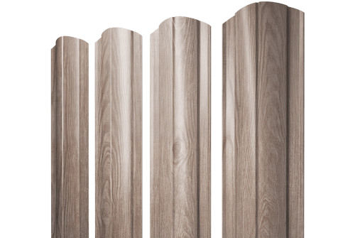 Металлический штакетник Круглый фигурный 0,45 Print Elite White Wood TwinColor представляет собой ограждение из металлических панелей с завальцованными краями и выпуклой формой. Изготовлен из оцинкованной стали с полимерным покрытием, что обеспечивает защиту от воздействия окружающей среды.