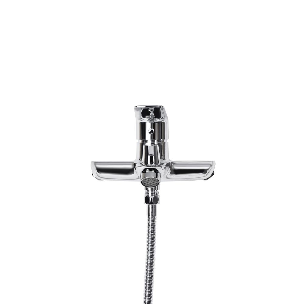 Хромированная отделка придает смесителю элегантный вид и легко сочетается с любым интерьером ванной комнаты. Удобные ручки обеспечивают легкое и плавное регулирование температуры и напора воды.