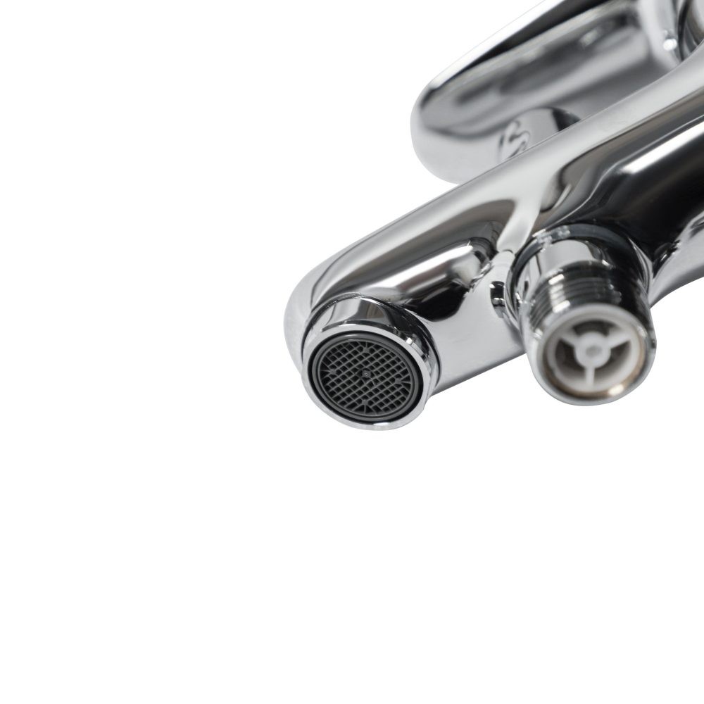 Хромированная отделка придает смесителю элегантный и современный вид, который подойдет к любому интерьеру ванной комнаты. Удобные ручки позволяют легко регулировать температуру воды и интенсивность потока.