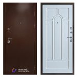 Эта входная дверь в стиле Техно медь Арка с отделкой белым деревом станет надежной защитой вашего дома.